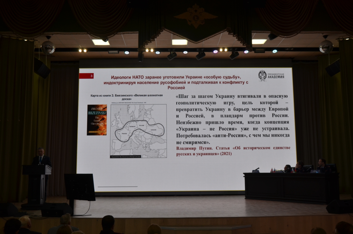 В ходе занятий слушатели осваивали такие проблемно-тематические блоки, как анализ современного терроризма как угрозы национальной безопасности России, организация органами государственной власти и местного самоуправления деятельности по обеспечению антитеррористической защищённости объектов, правовое регулирование противодействия терроризму, организация противодействия идеологии терроризма, в том числе особенности противодействия распространению идей украинского национализма и неонацизма.