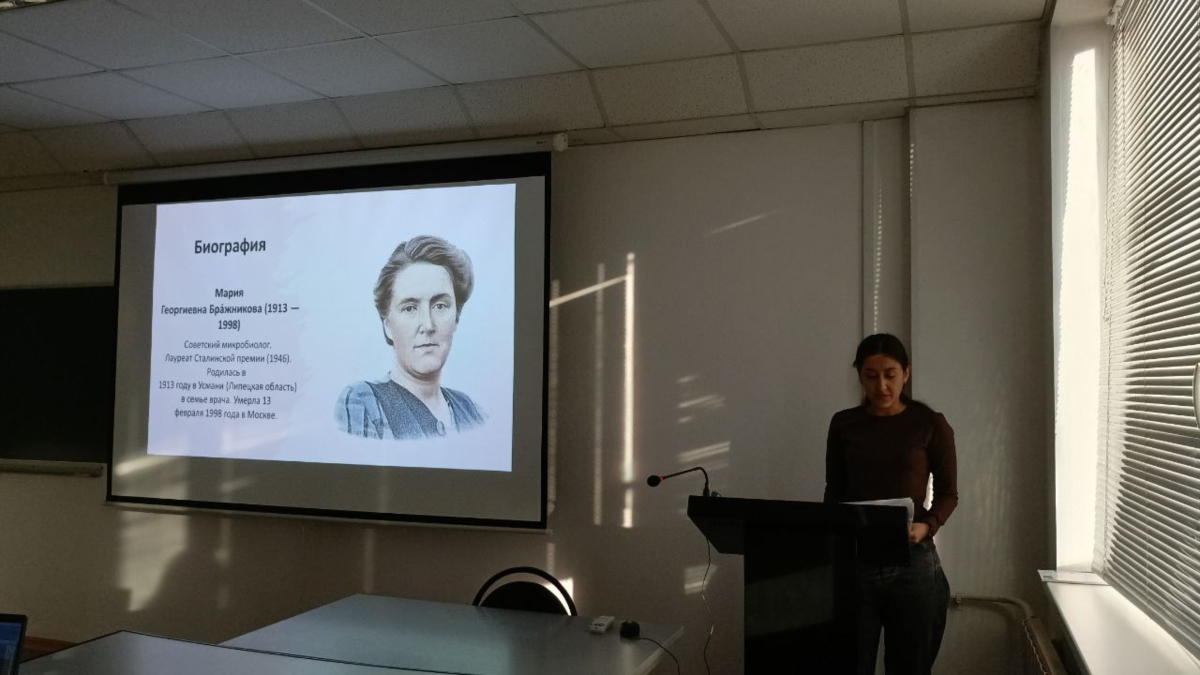 Совместная деятельность Марии Георгиевны Бражниковой и Георгия Францевича Гаузе привела к созданию в 1942 году первого отечественного антибиотика — грамицидина С. Об их работе поведала Варданян Марина из группы БкПс-300. Открытие М.Г. Бражниковой и Г.Ф. Гаузе было сделано в тяжёлые дни войны, когда потребность в эффективных средствах борьбы с бактериальными инфекциями была особенно острой. Антибиотики, созданные учеными, позволили врачам успешно лечить гнойные раны и инфекции, увеличивая шансы солдат на выживание.