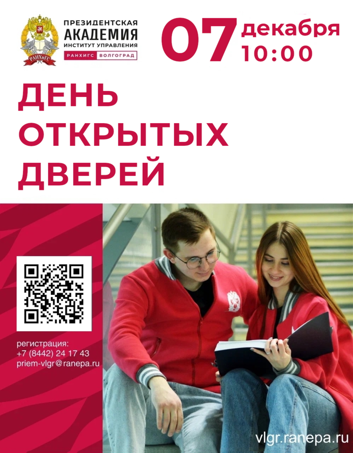 Волгоградский институт управления – филиал РАНХиГС приглашает абитуриентов и их родителей 07 декабря 2025 года на День открытых дверей.