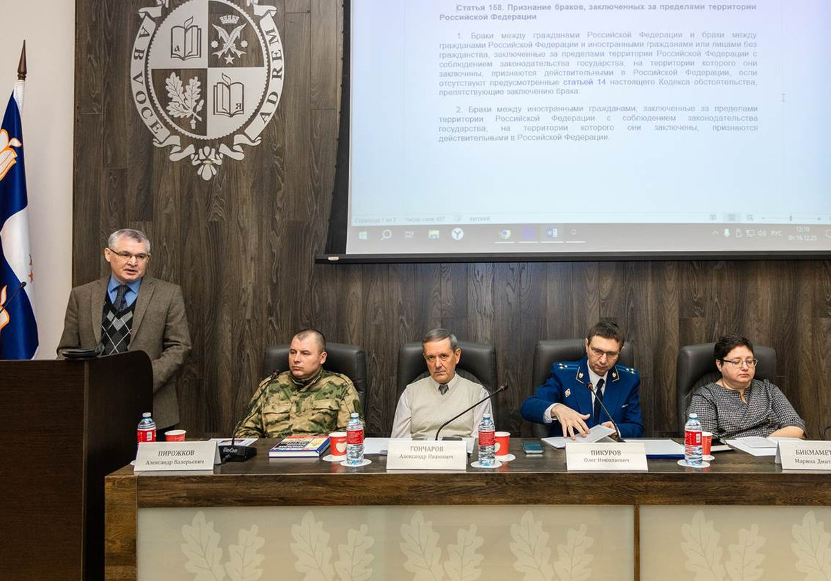 Волгоградский институт управления в работе круглого стола представлял доцент кафедры гражданско-правовых дисциплин юридического факультета к.ю.н., доцент Игорь°Борисович°Иловайский с выступлением на тему «Отдельные вопросы признания трансграничных браков в российском и зарубежном праве». Докладчиком было высказано мнение, что вопрос гармонизации в области регулирования семейных отношений в РФ не должен проходить в ущерб сложившихся в процессе многовекового развития отечественным семейным традициям и ценностям. В связи с чем, однополые браки, даже если они заключены за рубежом, не должны признаваться на территории России. На основе этого тезиса были предложены пути совершенствования российского законодательства.