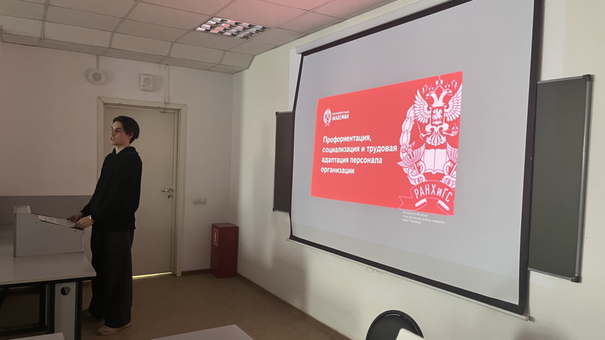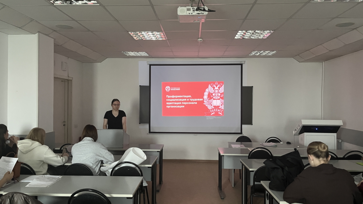 7 апреля на кафедре государственного управления и менеджмента прошел научный семинар на тему: «Профориентация, социализация и трудовая адаптация персонала организации». Участниками мероприятия стали студенты профильных групп БкУ-301 и БкУ-302.